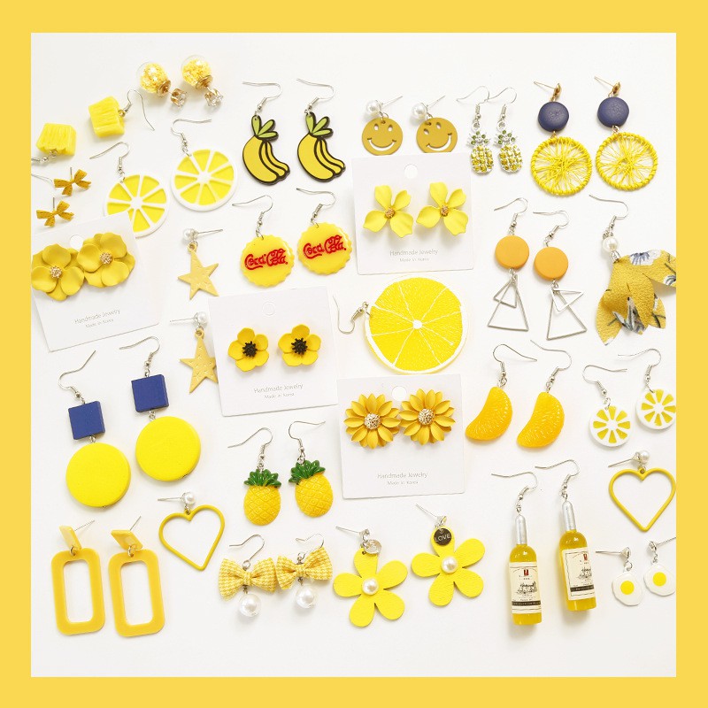Anting Tusuk Desain Buah Lemon Lucu Warna Kuning Gaya Korea Untuk